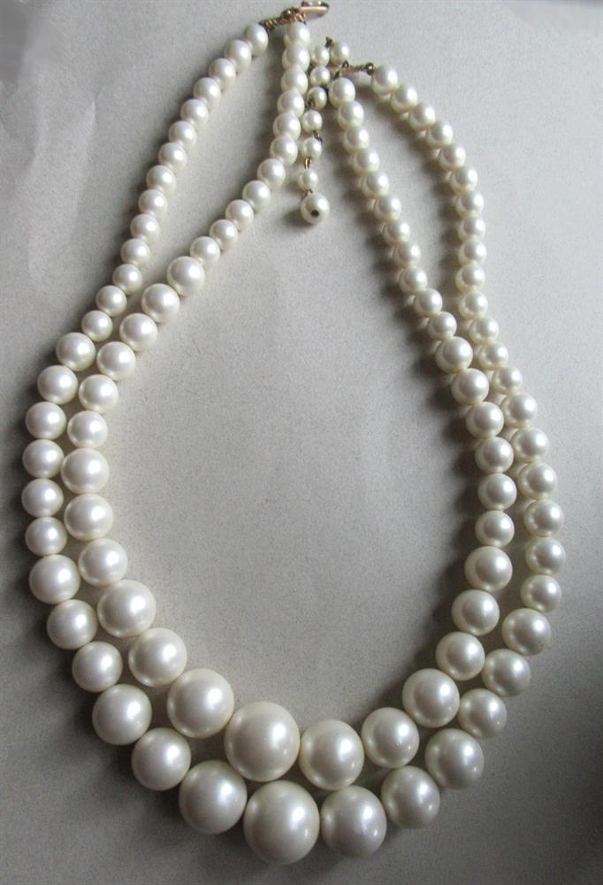 Vintage big bold faux pearl double stand necklace. Wonderful shape.