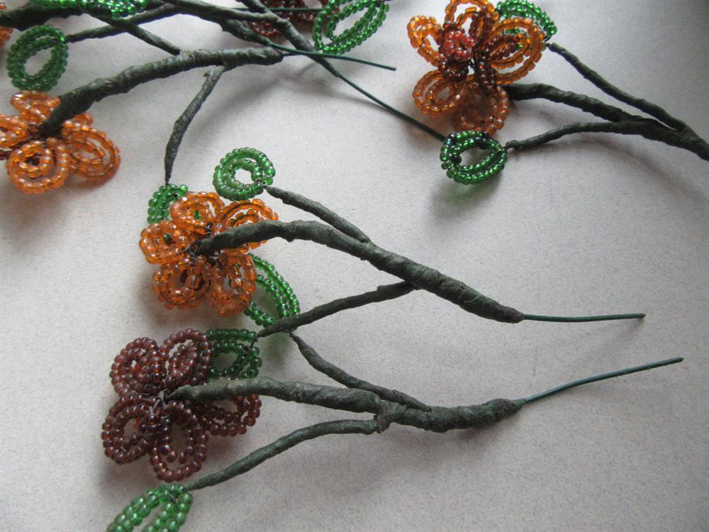 Vintage French glass beaded flower pics. these are oldies! They measures approx. 4" long. Nine pics in this lot.