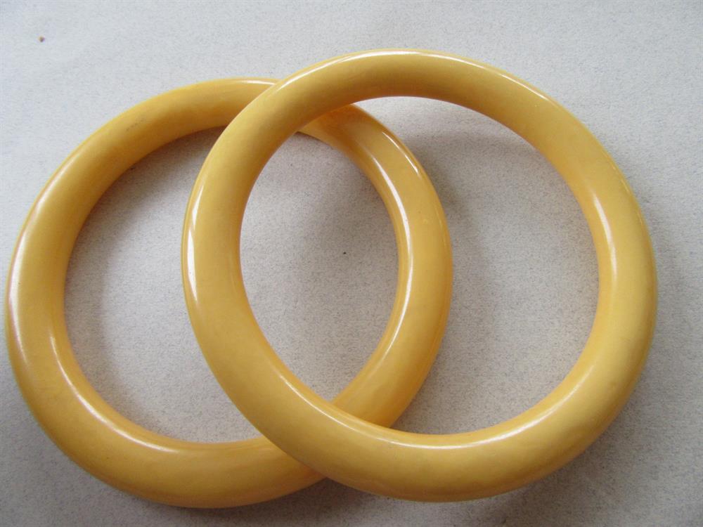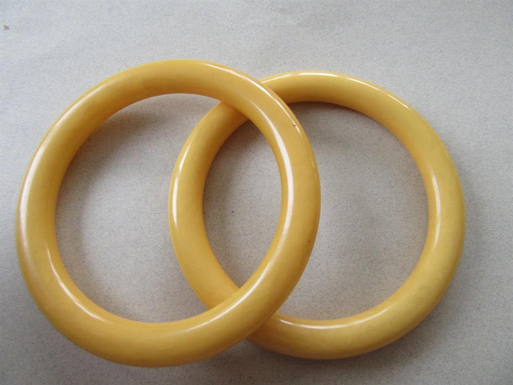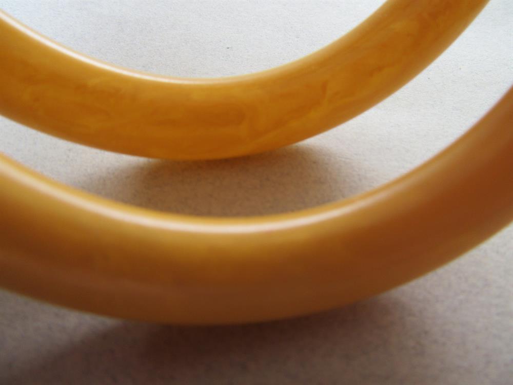 TWO corn color genuine bakelite bangle bracelets with subtle swirls.