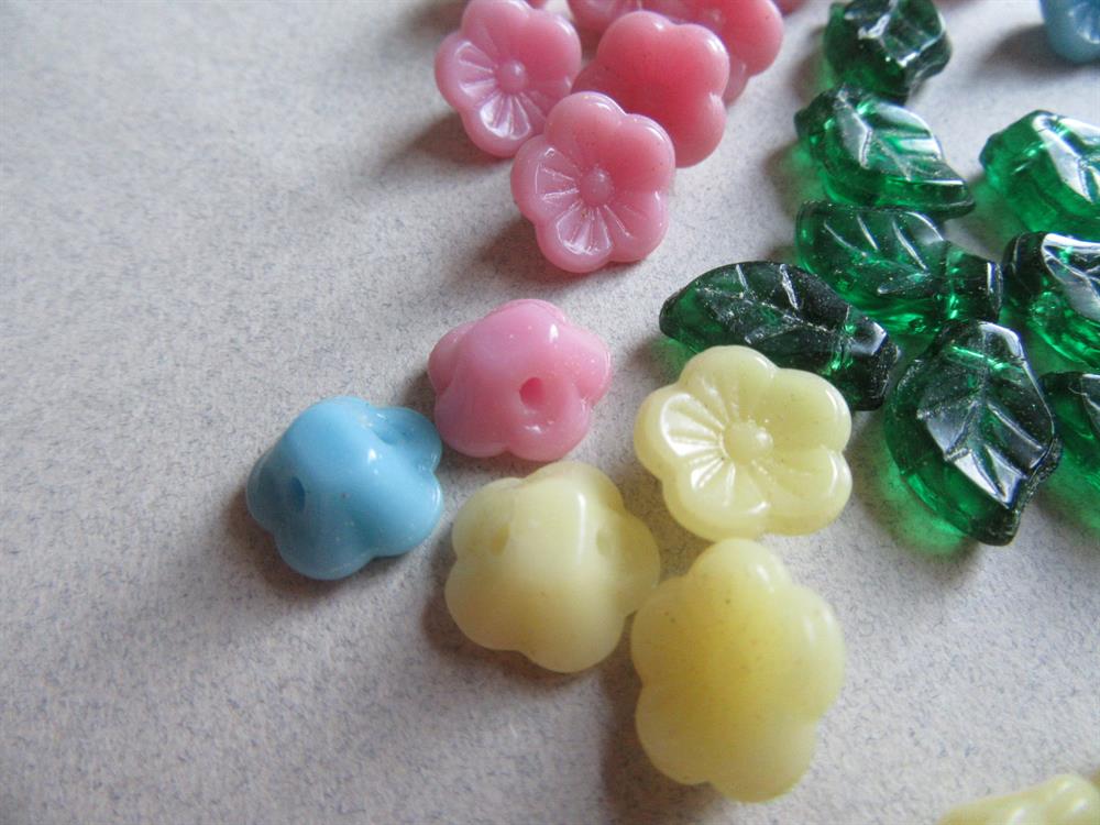 Vintage Glass Flower and Leaf Beads Fruit Salad Destash Jewelry Making Crafting