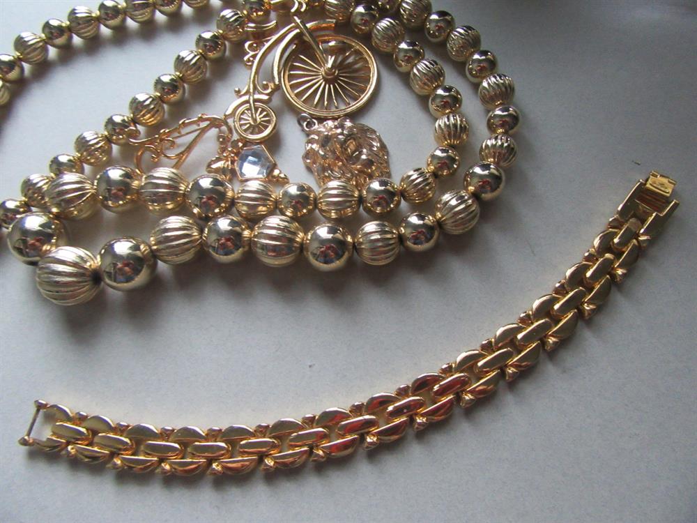 Vintage Gold Tone Jewelry Lot Pins Brooches Necklace Bracelet