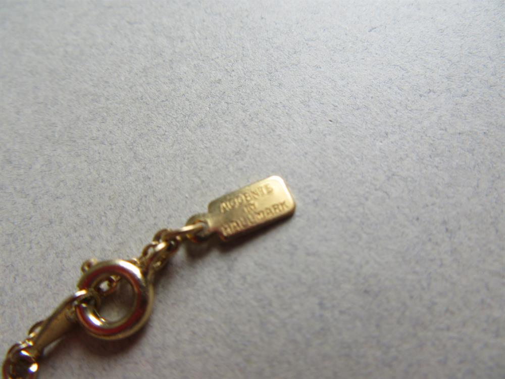 The metal hang tag reads Accents by Hallmark. The chain is 16" long. The pendant is 3/4" across. Some minor surface scratches.