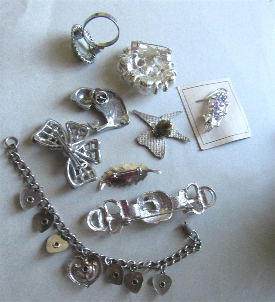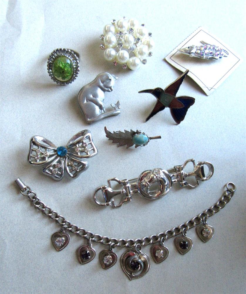 vintage jewelry lot. All in good shape. The rhinestone rat or mouse pin has never been worn. Two are tac pins.