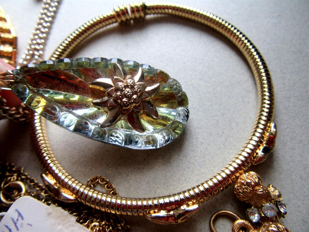 Throwing in the small faux cameo pendant and the poodle charm with rhinestone eyes and collar signed with an "S".