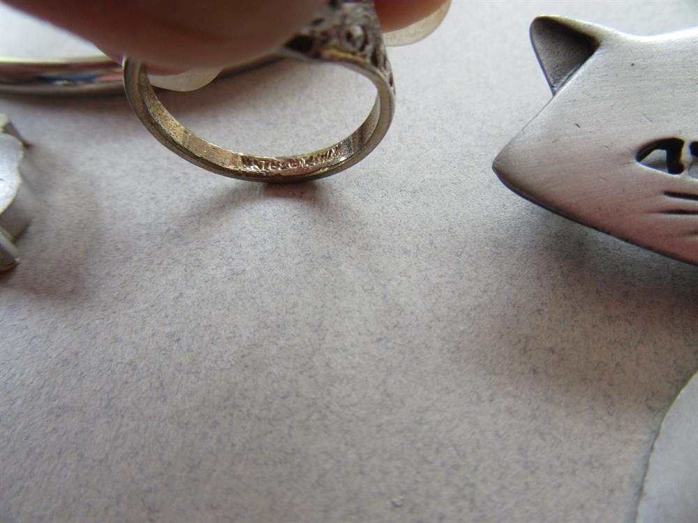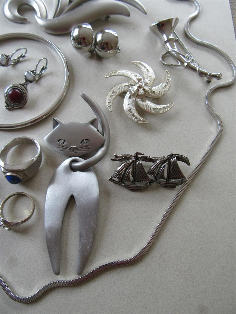 Pewter articulated cat pin signed Pewter and