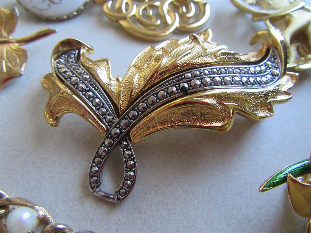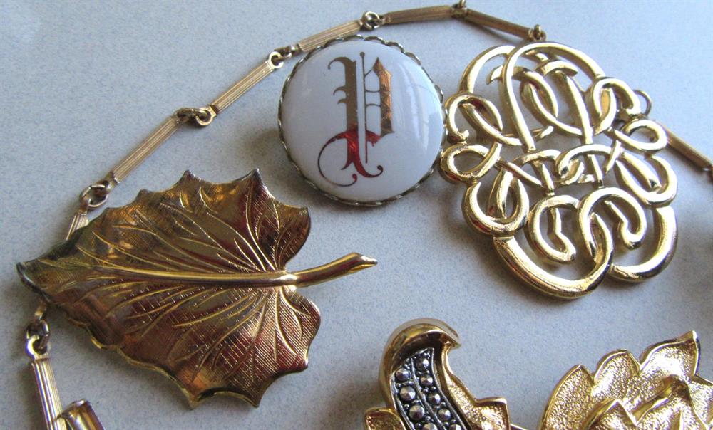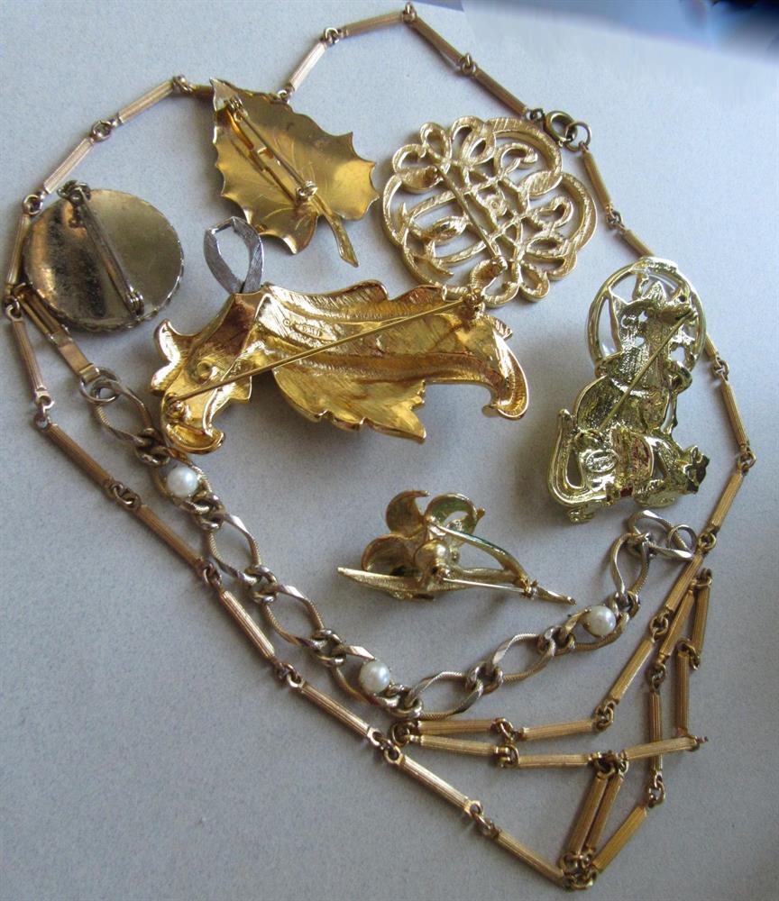 Vintage jewelry lot. The largest pin is the one and the center and it is signed