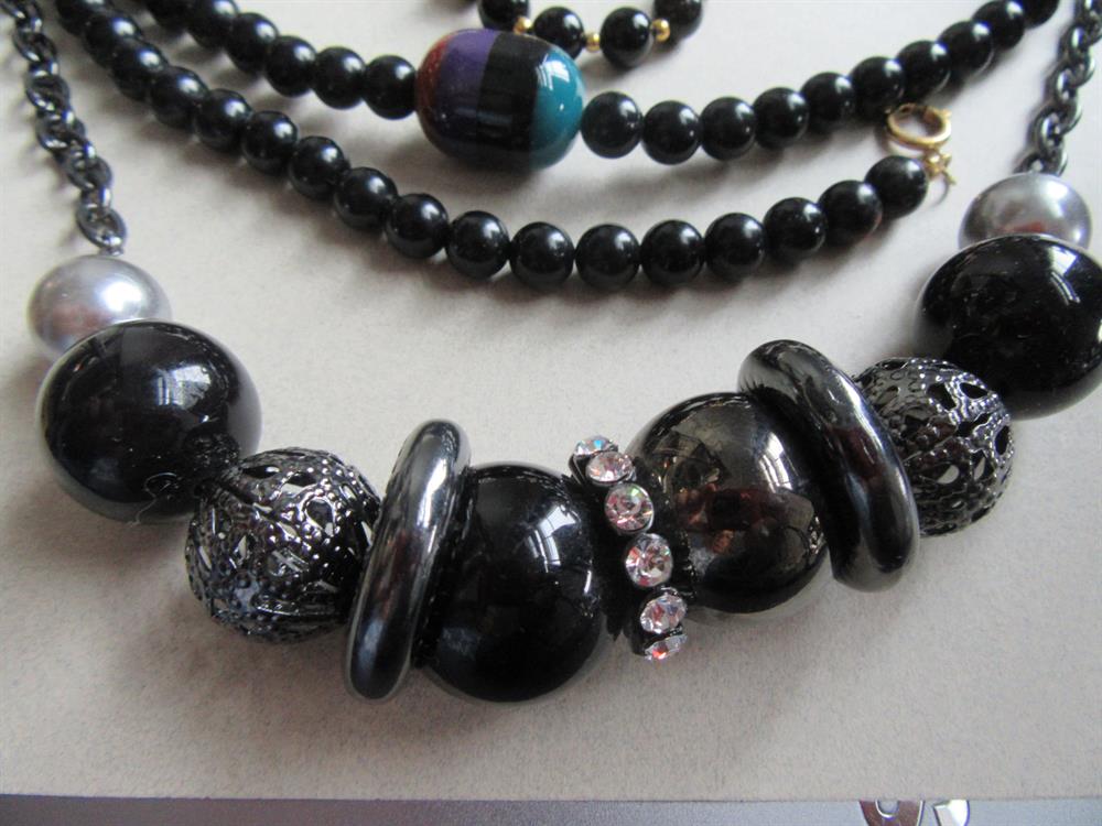 Black lucite necklace with layered lucite larger beads - 36" long