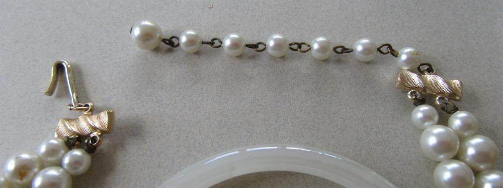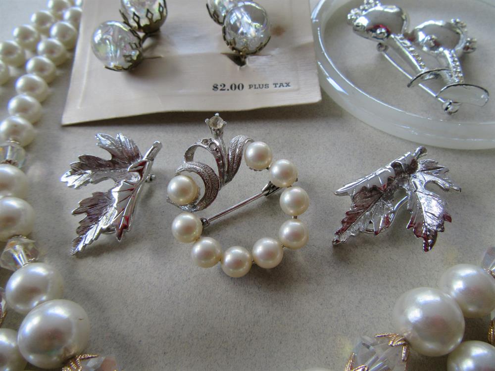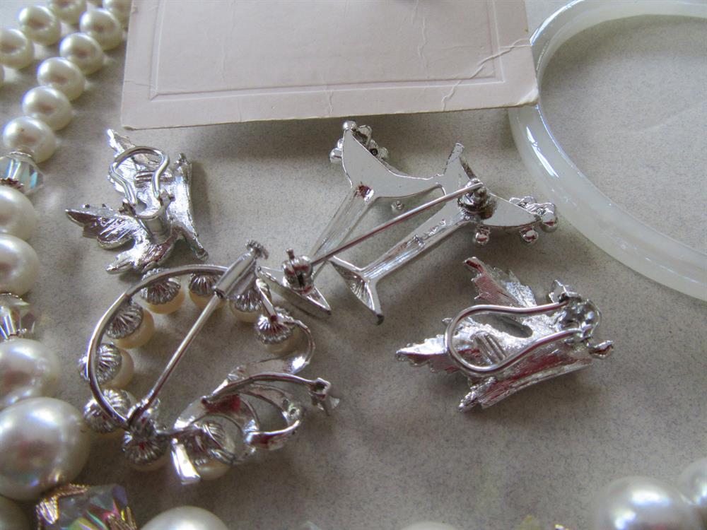 Vintage Jewelry Lot Faux Pearls and Crystal Necklace Pins Glass Bangle Earrings Some Signed