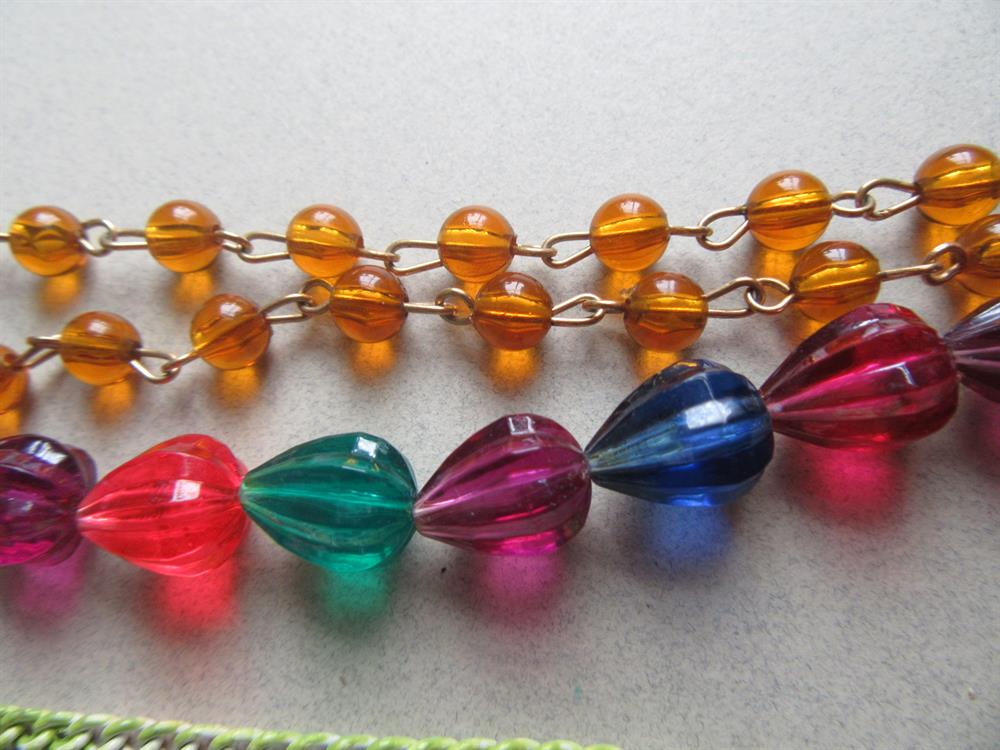 Multi color lucite necklace measures 24"