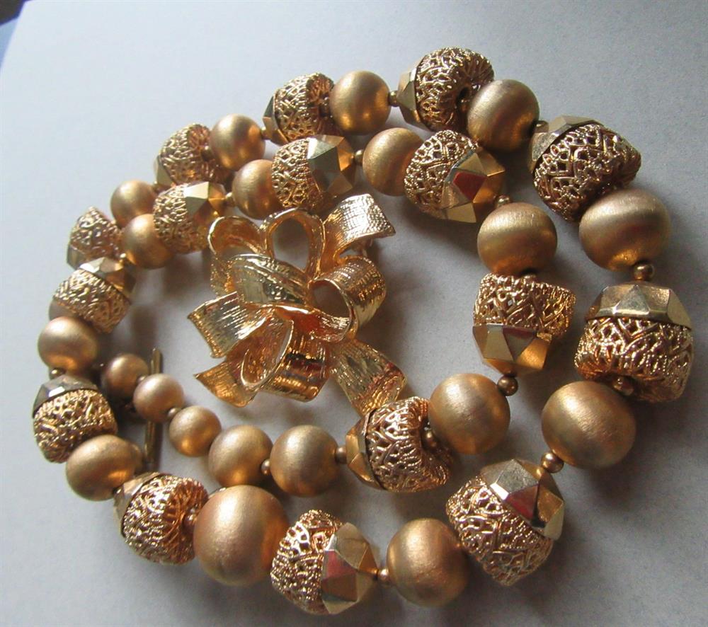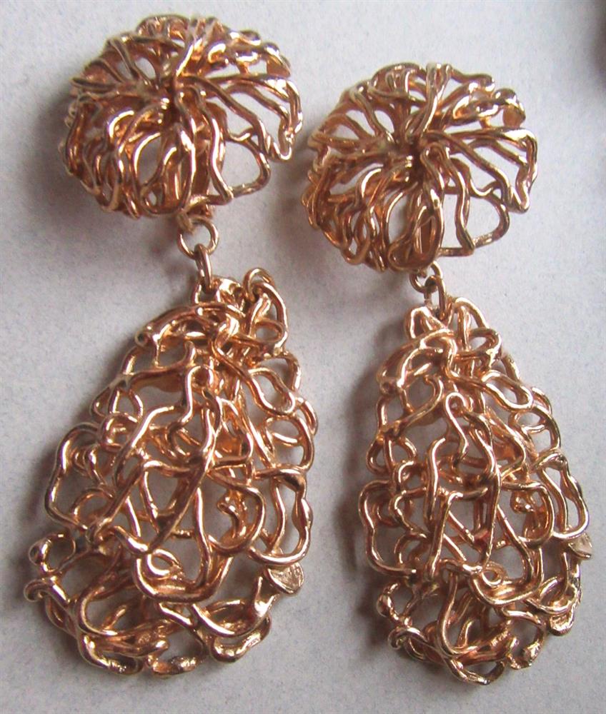 Vintage gold tone jewelry lot. Fabulous Napier signed baroque wire clip earrings. they measure 3 1/4" long and 1 1/4" wide at the widest part. Clip tension was tested and they are nice and tight. The gold tone chunky necklace measures 24" long and has a toggle clasp. I am throwing in the bow pin. all in fabulous shape.