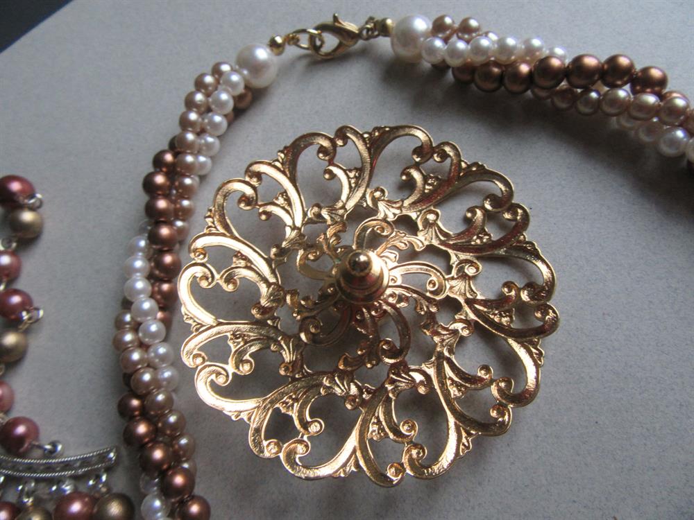 Two faux pearl necklace, on is 16" and the multi strand necklaces' short4est strand is 13" not including the hook or bead extender which will give you more length. All in great shape unless otherwise noted.
