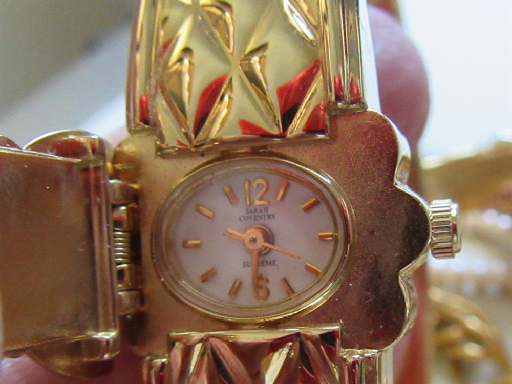 Sarah Coventry butterfly hideaway watch - needs battery? Non working, has sticker remnant on back