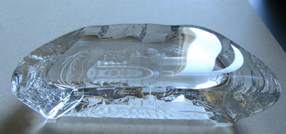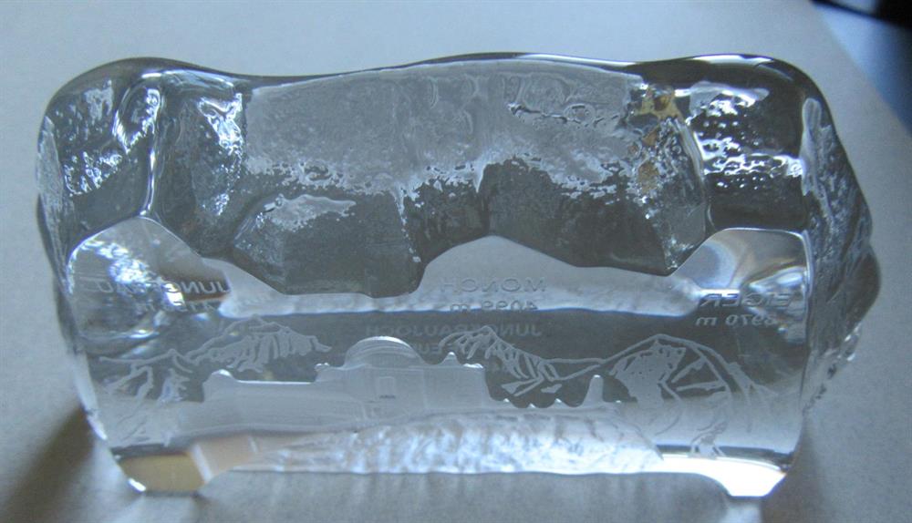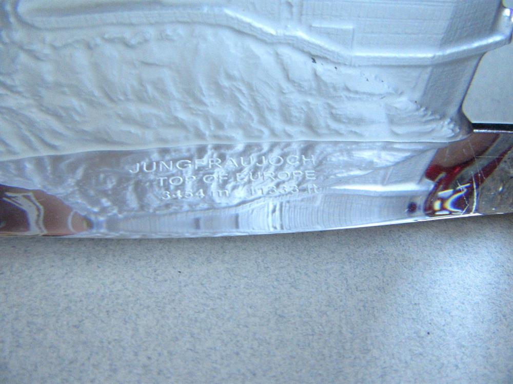 Fabulous Jungfraujoch Top of Europe Switzerland Frosted Glass Paperweight Souvenir. I am not sure of the age.
