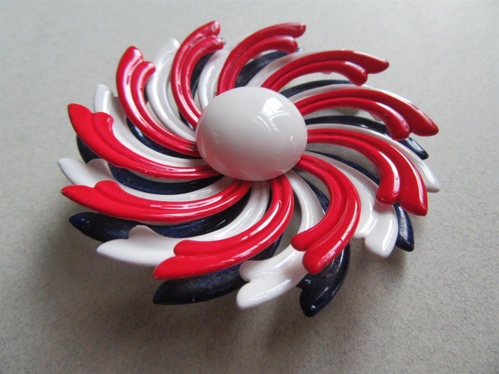 Vintage Mod Metal Pinwheel Pin Red White Blue 1960's Fashion