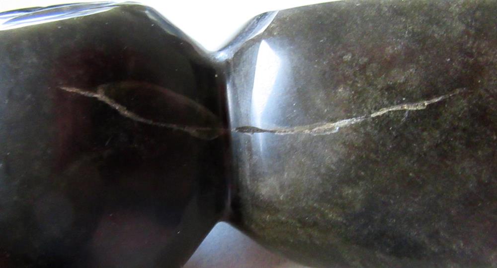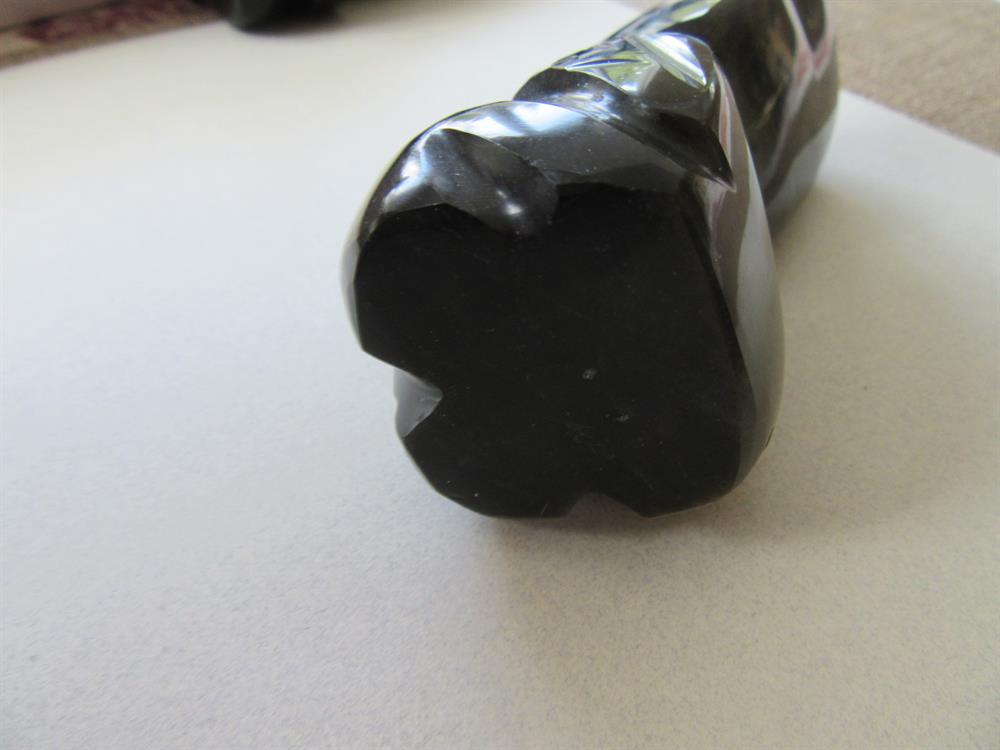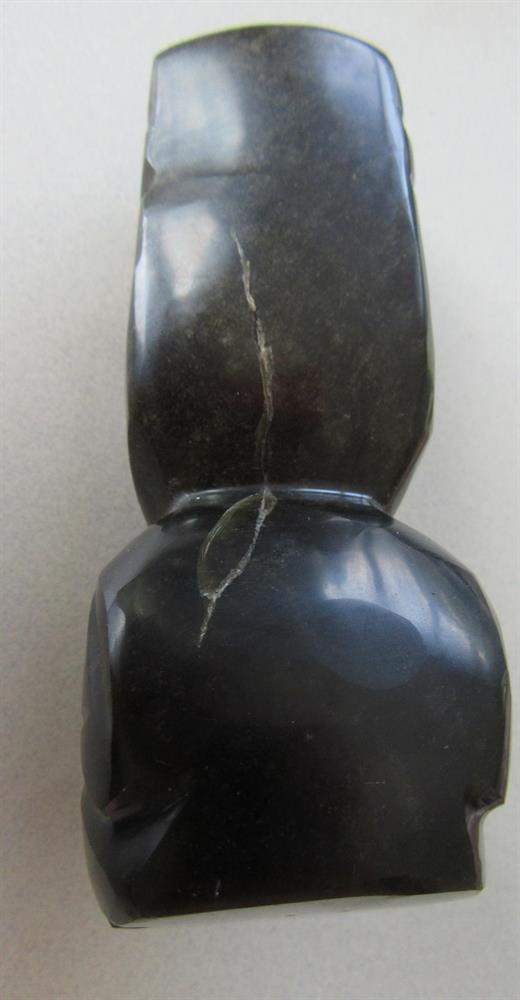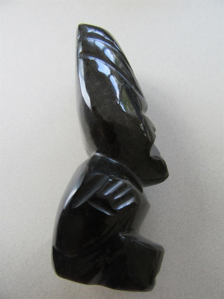 Vintage obsidian tiki statue. It measures 4" tall. It has a fracture line on the back. .Who sees the back? Sold as is.