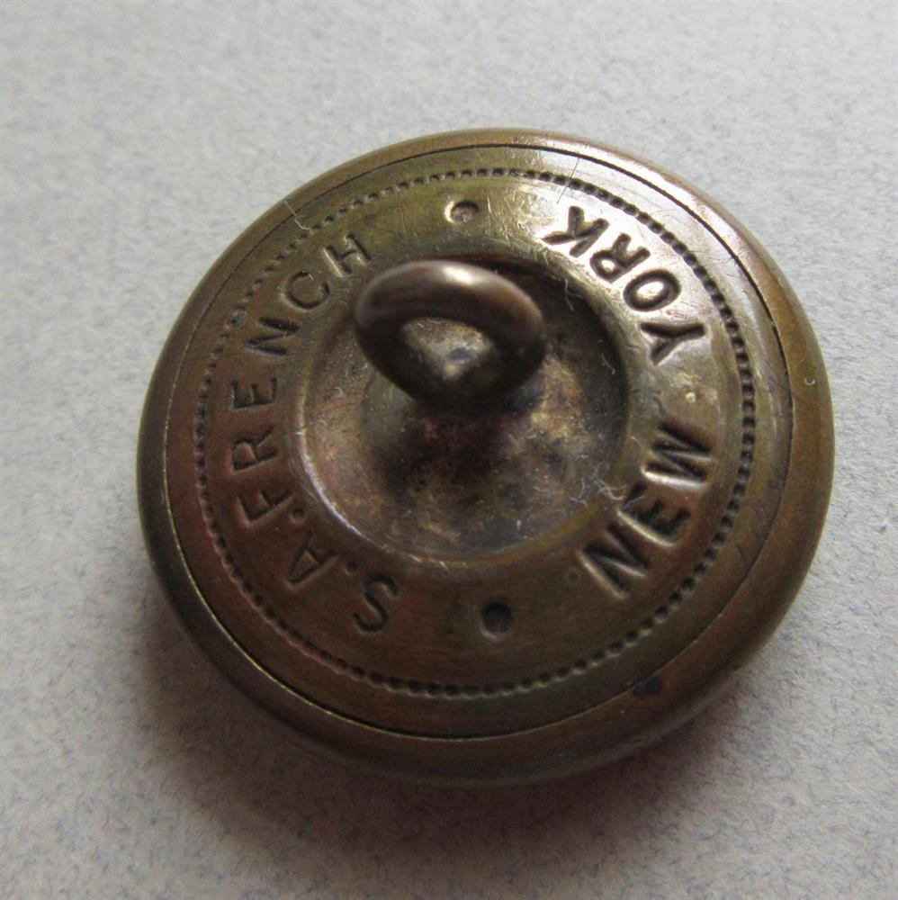 Vintage brass New Haven, Connecticut police brass button. It measures 1" across. Has a slight indent on the left hand side. The back reads S. A. French New York. Metal shank back.