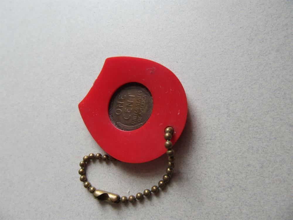 Vintage rare red color "Keep Me And You Will Never Go Broke" lucky key ring with a 1930's Wheat Back penny. Measures 1 1/2" long not including the chain. Great shape!