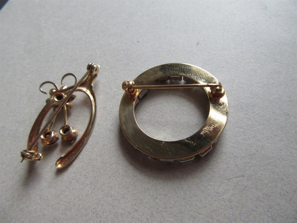 Vintage Rhinestone Pins Wishbone and Wreath Brooch