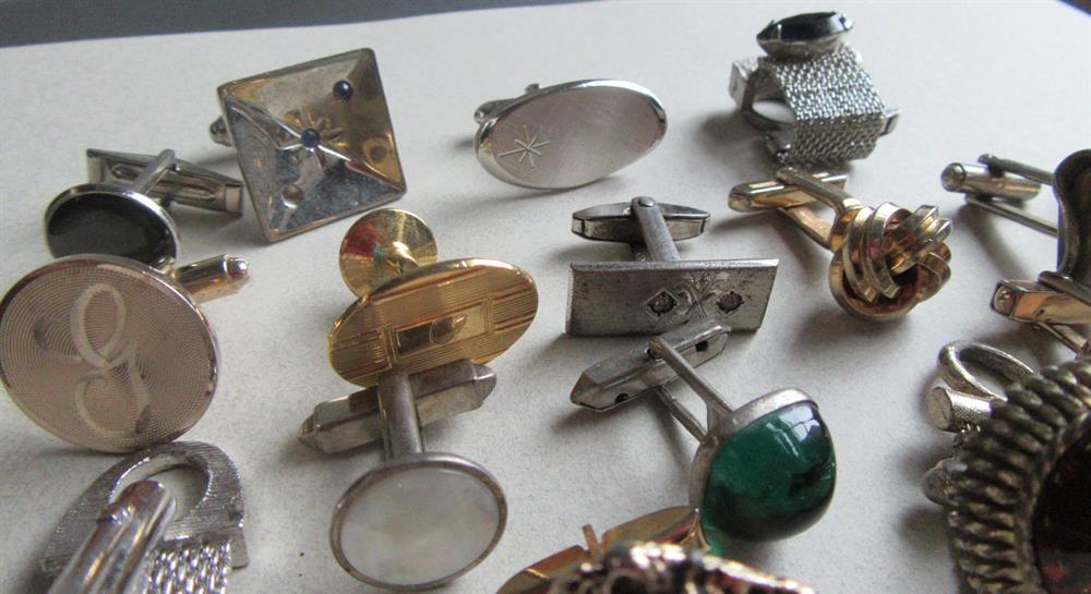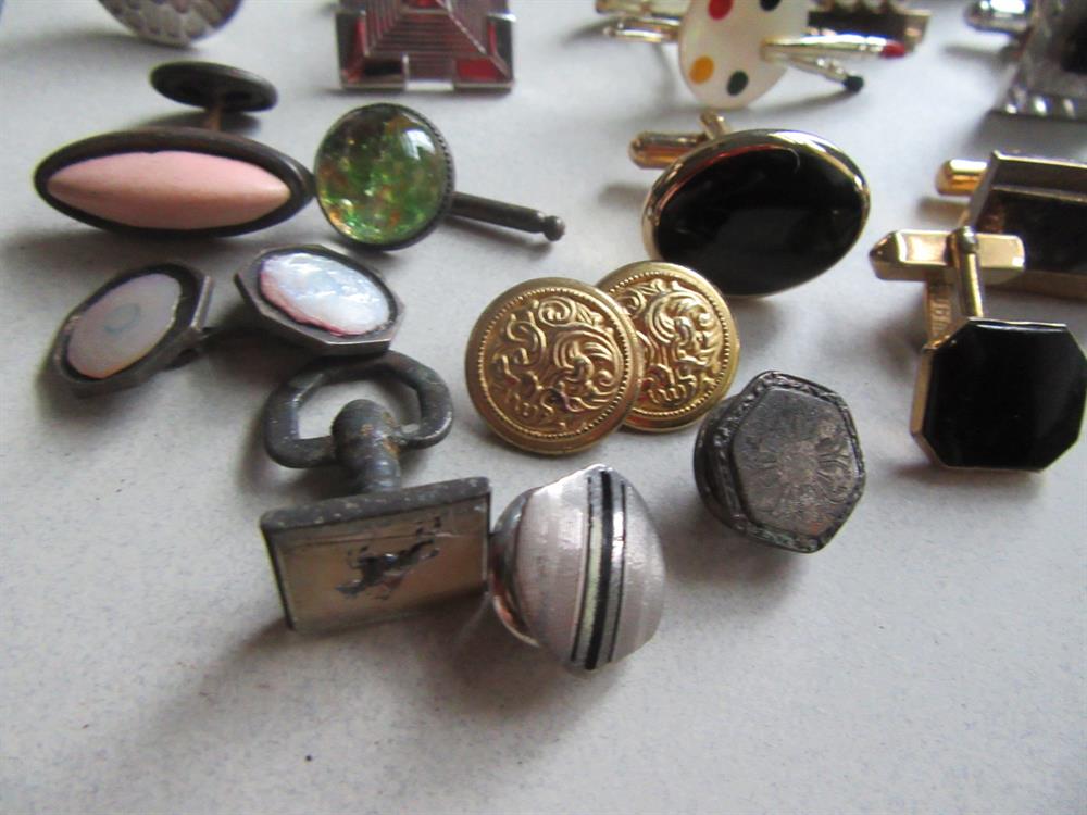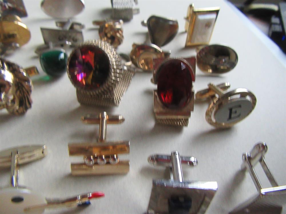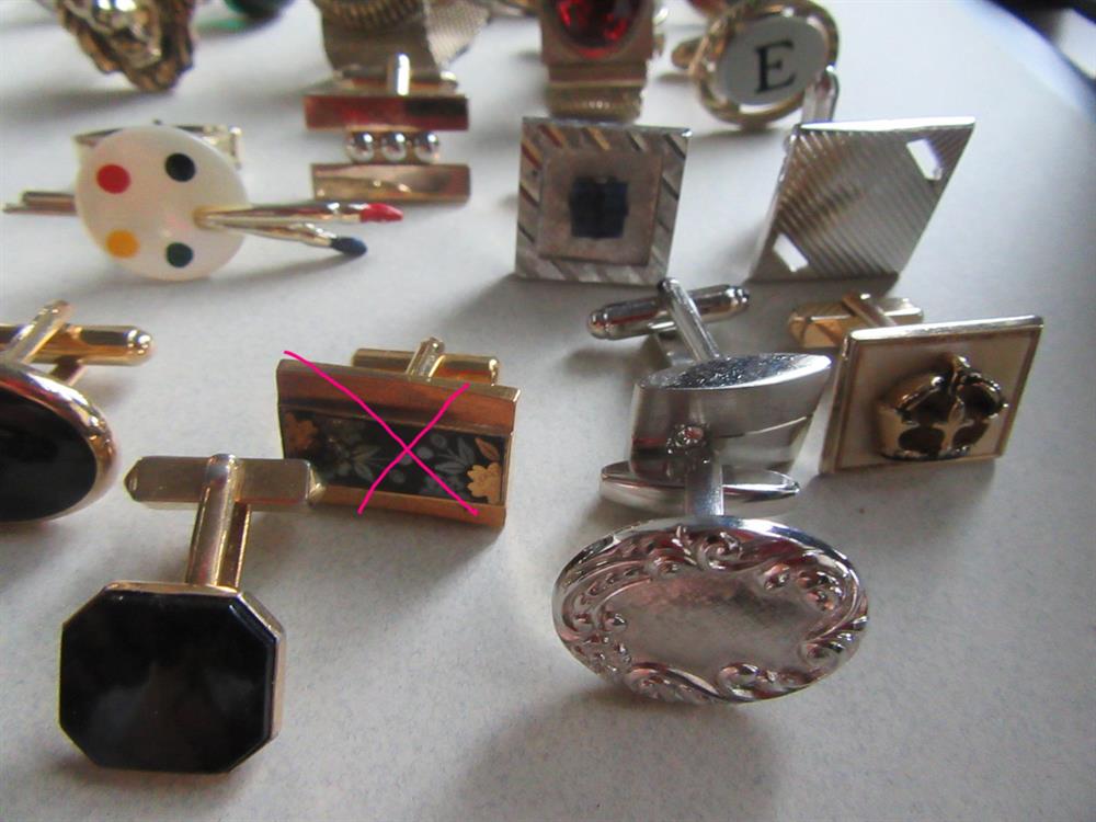Vintage single cufflinks lot. The cufflinks with the pink "x" over it is not included in this lot. It somehow snuck into the photo. LOL