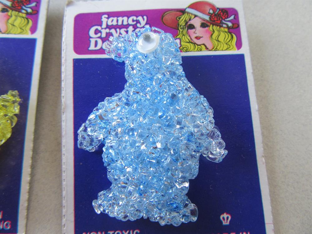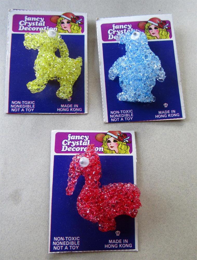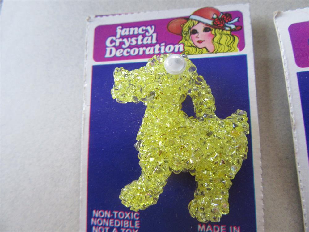 Three vintage "spaghetti" novelty pins with google eyes. Never worn. All on their original cards. Made in Hong Kong. The eyes on the yellow pin are a bit fogged. You will receive all three pins. The longest one measures 2" long.