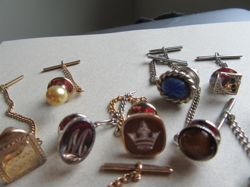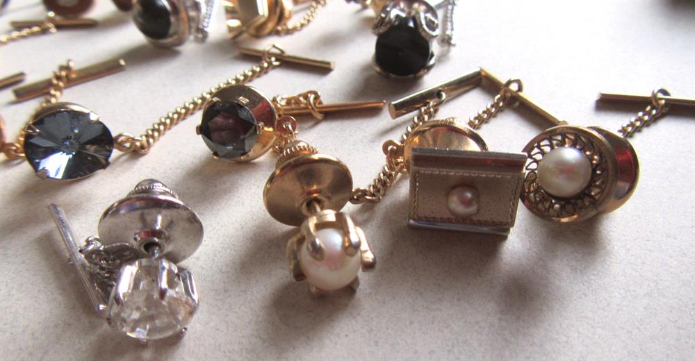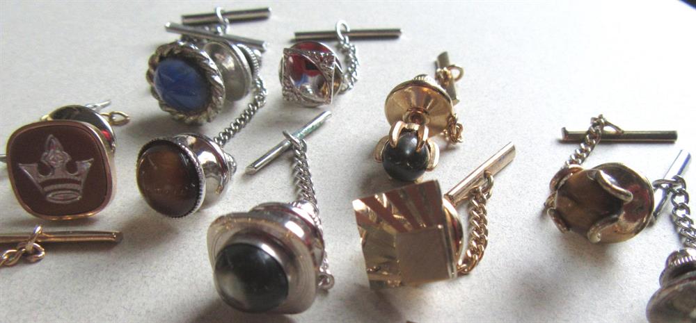 Vintage tie tacs lot. Great variety. Some genuine stones.