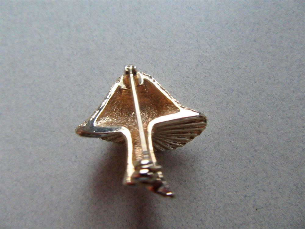 Vintage petite gold tome mushroom pin. It measures 1" long and it is in excellent shape. I photographed a pen next to it, so you can see the actual size.