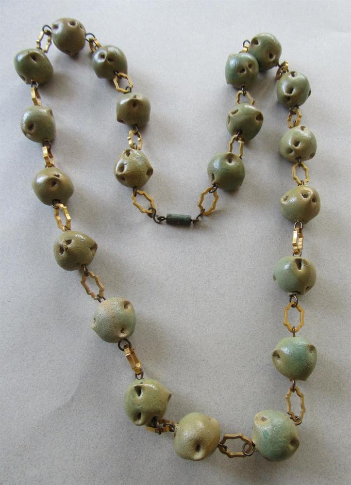 The clasp is a screw style that has some greening and I don't think it is original to the piece. Sold as found.
