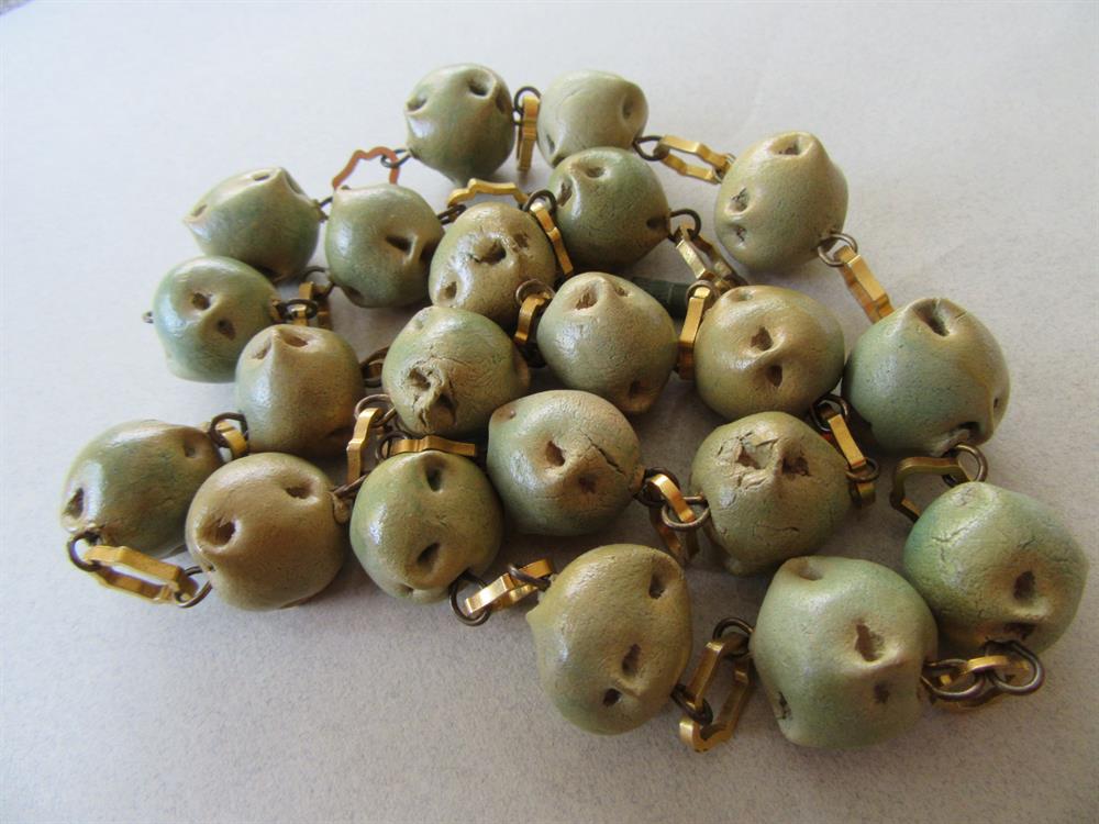 This is a very unusual necklace. I cannot find another necklace like it. It is VERY light weight. The necklace measures 28" long and the beads are approximately 3/4" across. No two beads are alike, so it appears to be artisan made?