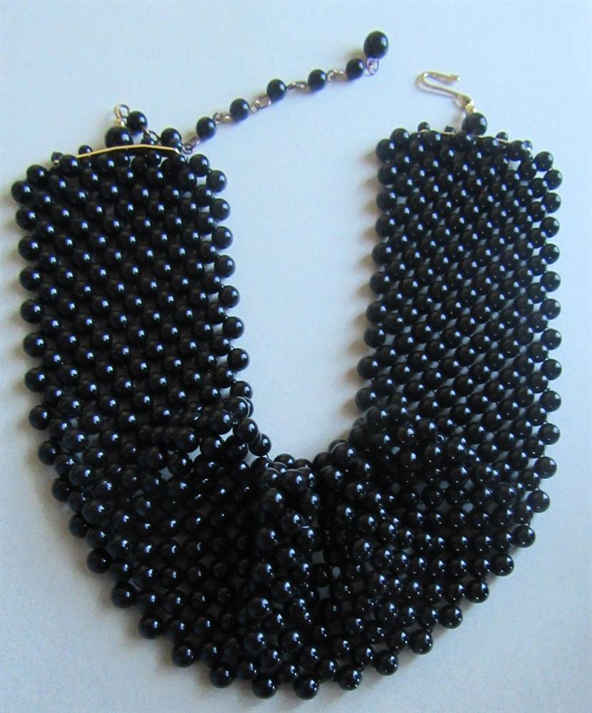 Vintage Wide Black Lucite Beaded Choker Necklace