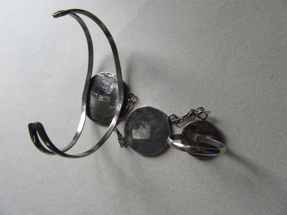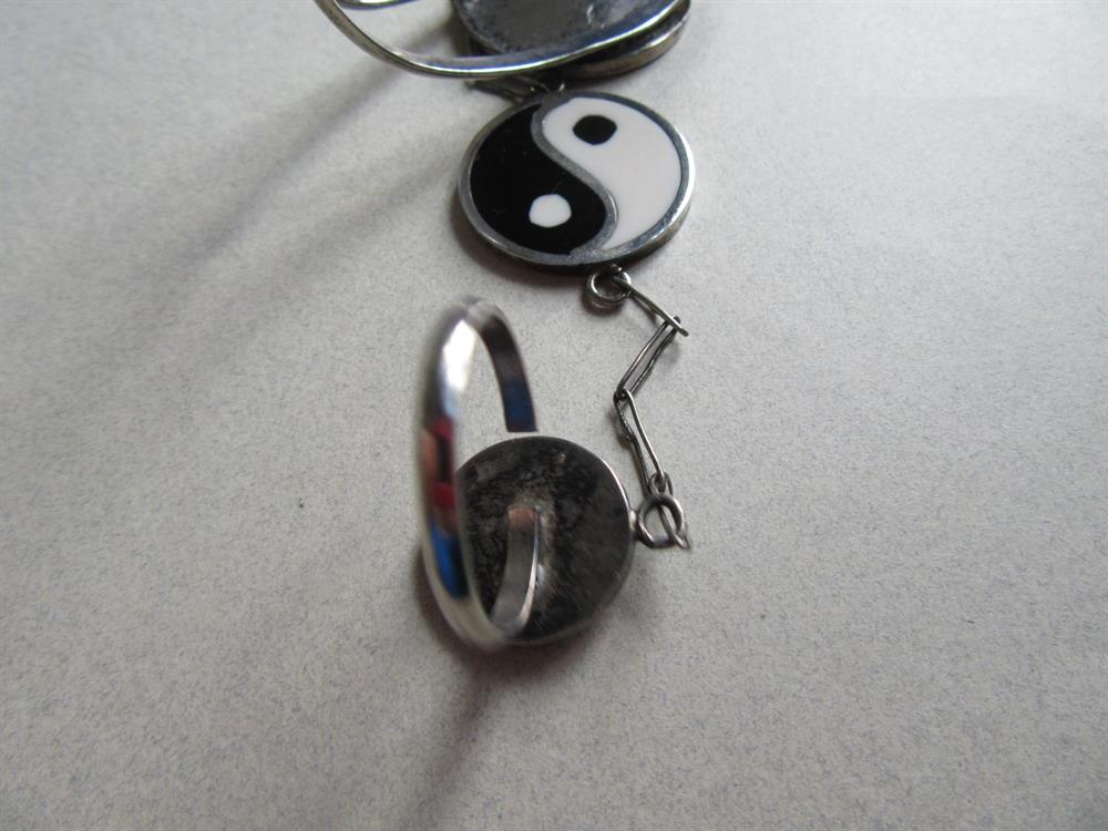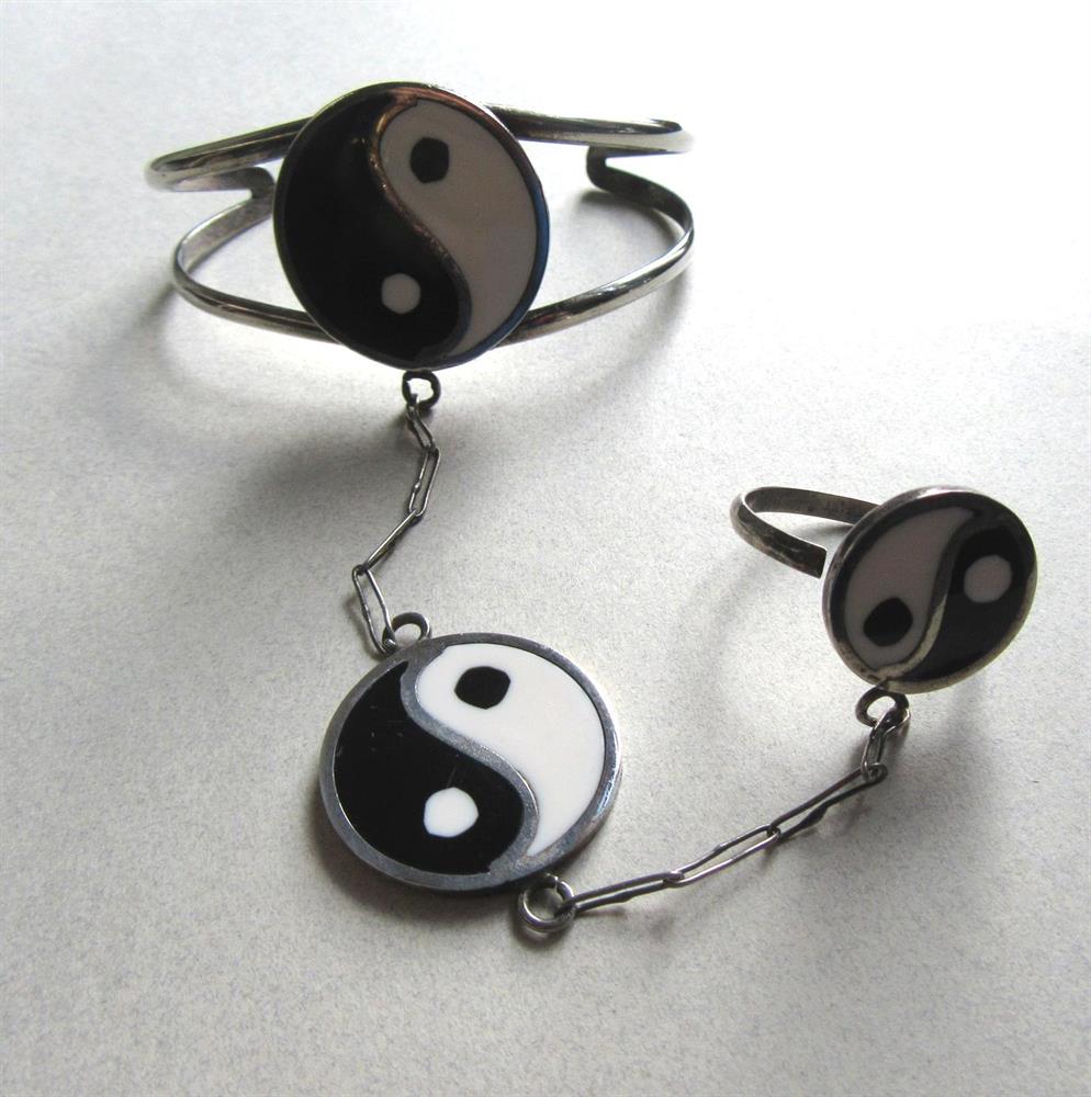 Vintage Ying Yang  Alpaca Mexico Slave Cuff Bracelet And Ring  Hippie Namaste