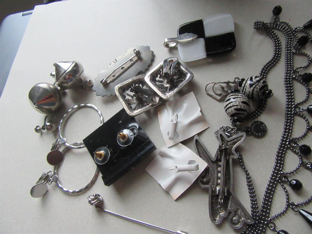 spaceship silver tone screw back earrings at the top of photo)