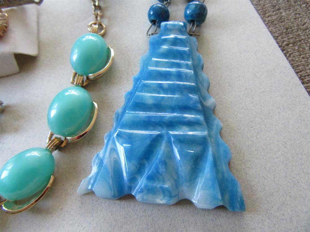 Vintage and Up Jewelry Lot Stone Tiki Necklace Lucite Rhinestone Rarrings Florapn