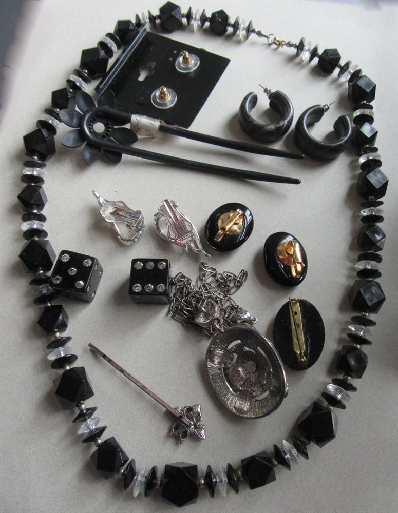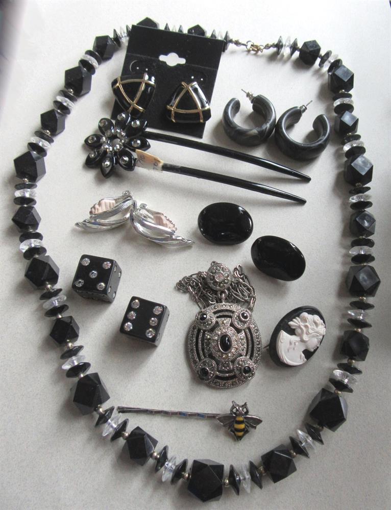 Vintage and up black jewelry lot.
