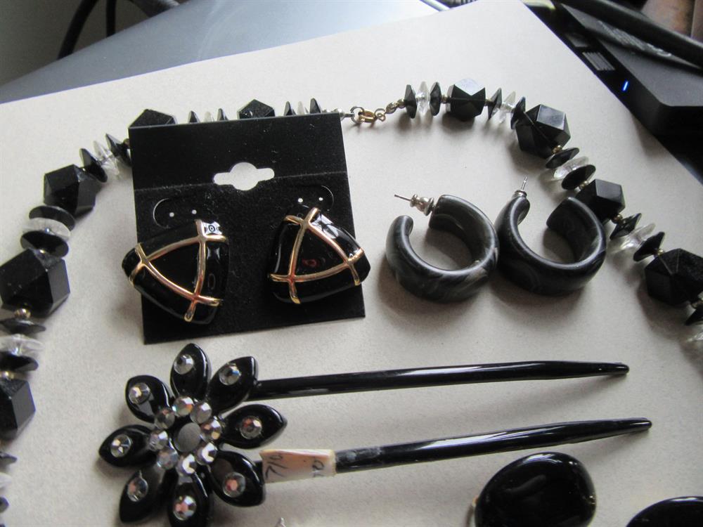 Vintage and Up Black Jewelry Lot Necklaces Earrings Hair Accessories