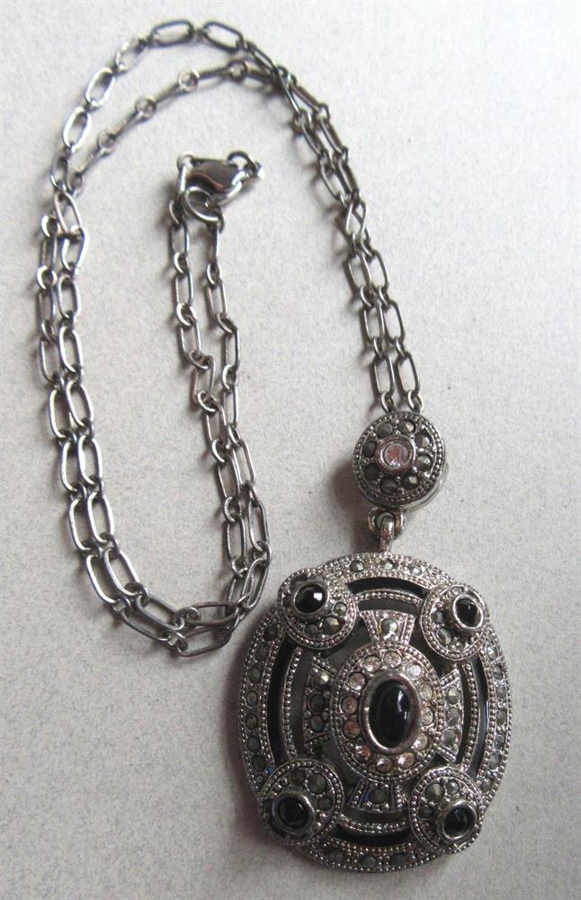 Rhinestone and black glass art deco style necklace
