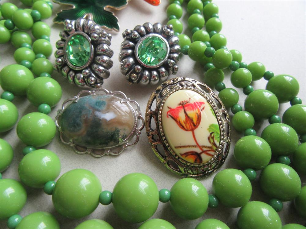 Vintage and Up Green Jewelry Lot Pins Brooch Moss Agate
