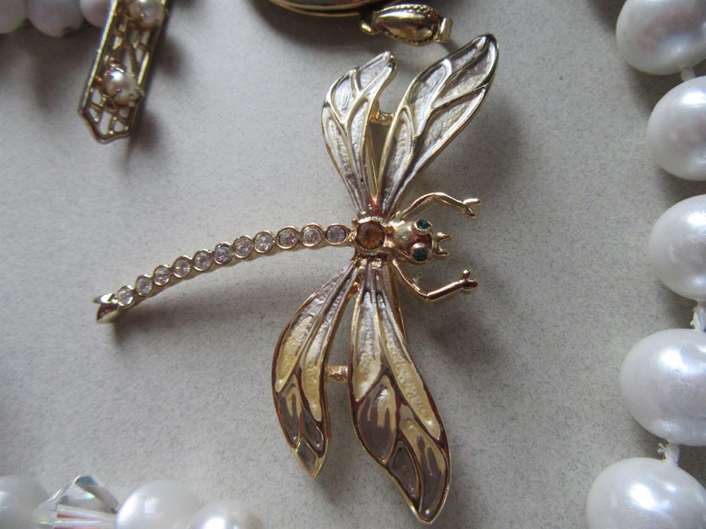 Vintage and Up Jewelry Lot Faux And Genuine Pearls Dragonfly