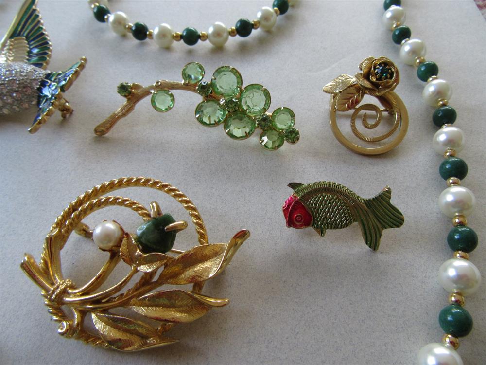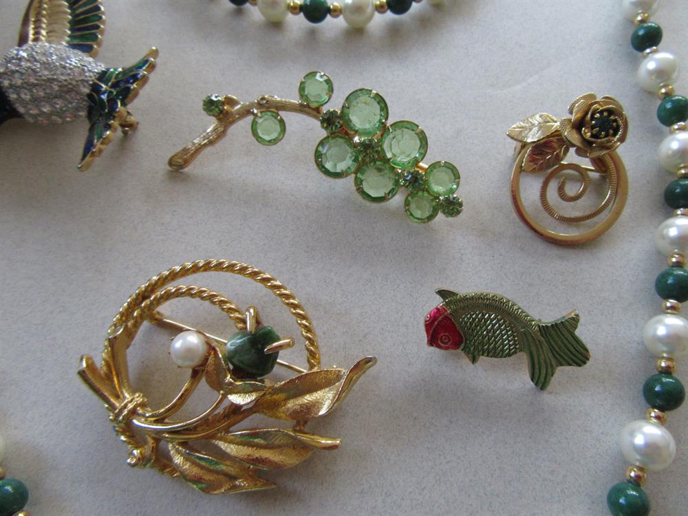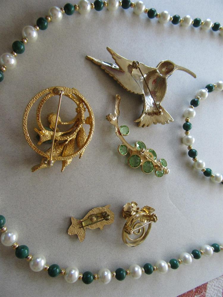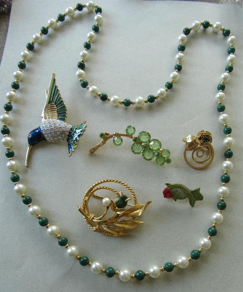 Vintage and Up Jewelry Lot Rhinestone Hummingbird Pin Jade
